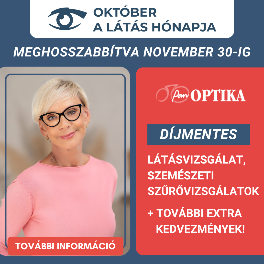 *Az ingyenes látásvizsgálat és szemszeti szűrővizsgálat akció 2025 november 30-ig tart. Amennyiben szemüveget vagy kontaktlencsét rendelsz nálunk, úgy a látásvizsgálat és a szemészeti szűrővizsgálat árát levonjuk a megrendelt szemüveg vagy kontaktlencse árából.